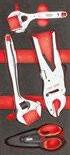 Verstelbare tang, beitel, pinpunch, hamer, schaar, assortiment met bits, haakse inbussleutels, universele tang, neustang, knippen, snijden, hamer