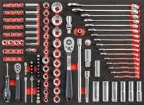 Zestaw z sześciokątnymi nasadkami i kluczami płasko-oczkowymi w kasecie modułowej