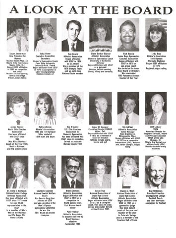 Tim LaFleur Athlete's Association Sales Manager Allen Bradley Co. Minneapolis, Minn. Began affiliation with USGF in 1973 as a competitor International (FIG), National and Junior Olympic Judges rating