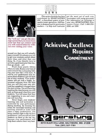 This series ofarticles has been contributed by SPORTASTIKS INC., a franchised system of gymnastics center operations. Information is designed just for gymnastics teachers - to help each instructor