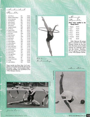 These results are from Day 2 of com petition and determ inea tkeall-around champion . Day 1 of competition determined the athletes who qualified to the 1 996 Olympic Games .