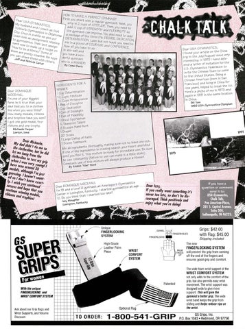 HOW TO MAKE A PERFECT GYMNAST start with a regular gymnast Ne Dear USA GY . . ' First whip In 2 cups of ATTITUDE Th . xt, you My hUsband MNAST/CS and I ' add '/2 cup of STRENGTH . en, you need to Trotter's G coach at M the gymnast can' and FLEXIBILITY so y ;'t . Once ,::::s,t,cs In Oklah;!a a package of the ~;;:.rrov~. You also need to add eam kids an I e We give OUr DETERMINATION L BtebDs. DESIRE, DEDICATION, to aSSlgnme . . . as ut not least y d gymnastics Th nt relatln miX In a pound of COURAGE ou nee to ment elr last g "H was to make aSSign. Now all you have to d and CONFIDENCE. . 0 OW to be a ,,, up a recipe on IS stir well and ..._ _ _ _ _ _ _ _ _ _.L._.;;;.;:::.;.;.,;;;;;.;.;.______........., the "Inner" S mare prett ome of you have a WonYou can sh Y creative. We h are the oPe derful gymnast Jeff and Pat . Se With othe rlCla Carter rs, who is a WINNER! By Cass; Dav;s