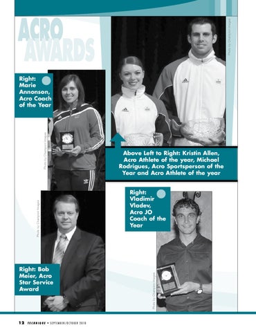 Above Left to Right: Kristin Allen, Acro Athlete of the year, Michael Rodrigues, Acro Sportsperson of the Year and Acro Athlete of the year Right: Vladimir Vladev, Acro JO Coach of the Year