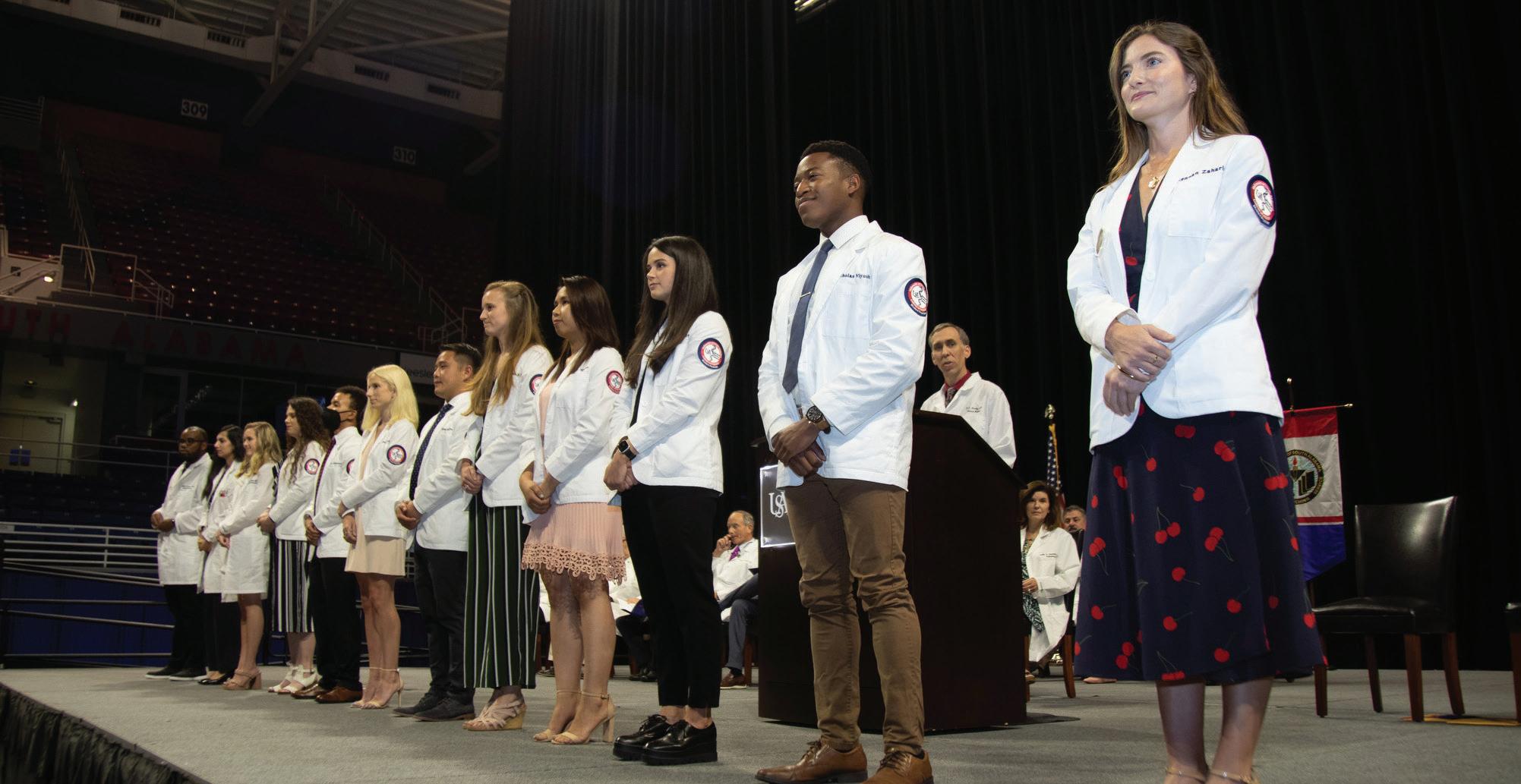 Members of the Class of 2024 were cloaked with white coats and took the Medical Student Oath in a ceremony on June 16, marking the transition into their clinical training. During the ceremony, senior medical students, residents and faculty were inducted into the USA Chapter of the Arnold P. Gold Humanism in Medicine Honor Society.