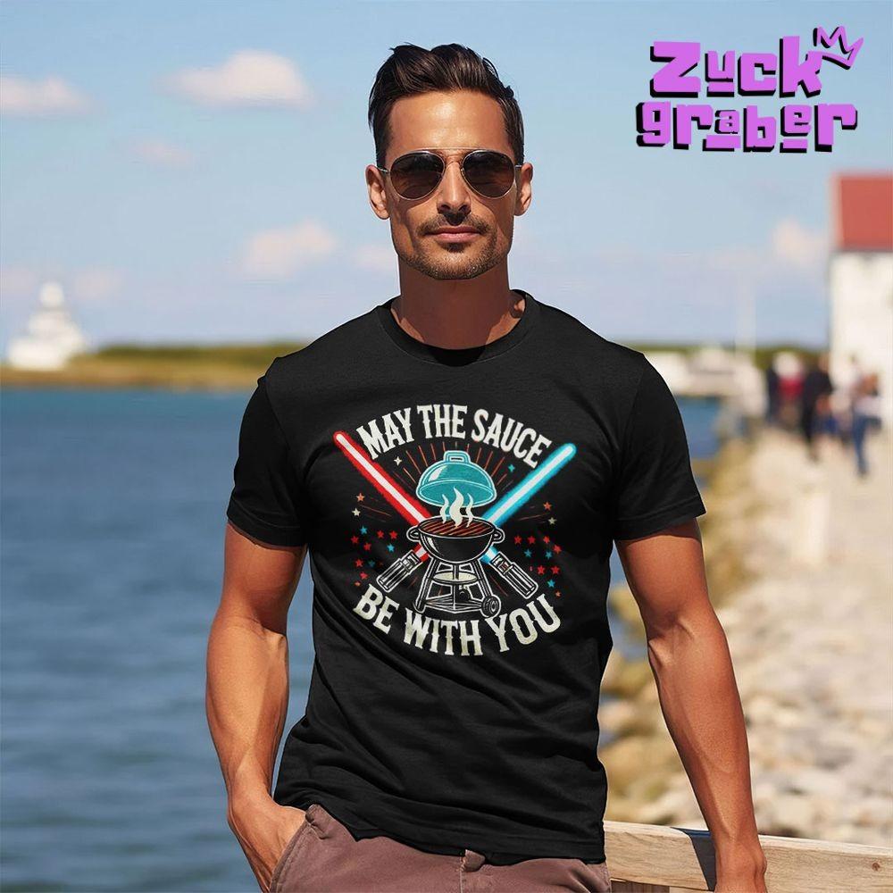 As I stood by the sunlit shore, the breeze carrying whispers of the sea, I couldn’t help but feel a spark of joy wearing my May The Sauce Be With You Premium Shirt. This isn’t just a shirt—it’s a story woven into every thread, born from a love for grilling and a playful nod to a galaxy far, far away. Crafted by passionate creators at Zuck Graber, this premium black tee celebrates the art of barbecue with a clever twist on a iconic sci-fi phrase. The design, featuring crossed grilling tools that glow like lightsabers and a smoky grill at its heart, captures the magic of backyard cookouts where the “sauce” becomes your ultimate ally. The name May The Sauce Be With You holds a deeper meaning —it’s a wish for flavor, fun, and connection, uniting food lovers and dreamers alike in a shared moment of laughter and deliciousness. Made with soft, durable fabric, this shirt is perfect for summer barbecues, casual outings, or simply lounging with friends, all while sparking conversations and smiles. Whether you’re flipping burgers or just savoring the vibe, this shirt brings a sense of adventure and camaraderie to every bite. Join the grilling force and let the May The Sauce Be With You Premium Shirt be your companion— because in every great meal, there’s a little bit of magic waiting to be unleashed. Grab yours today and wear the flavor!