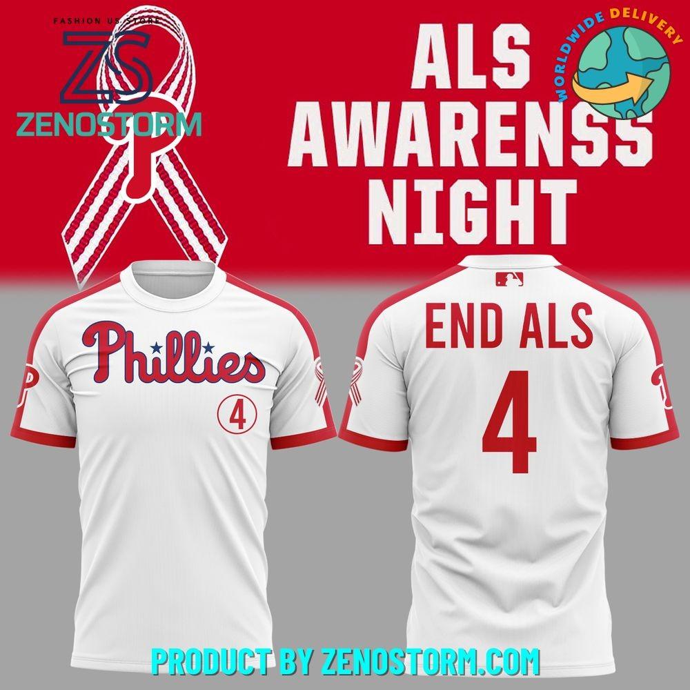 The Philadelphia Phillies x ALS Awareness Night 2025 Shirt is a special piece for fans looking to support their team while raising awareness for a meaningful cause. This exclusive shirt marks the partnership between the Philadelphia Phillies and the ALS Awareness Night 2025 campaign, dedicated to supporting Amyotrophic Lateral Sclerosis (ALS) research and awareness. Crafted with high-quality, breathable fabric, the Philadelphia Phillies x ALS Awareness Night 2025 Shirt ensures comfort and durability, making it perfect for game days at Citizens Bank Park, casual outings, or as a cherished keepsake for 2025.