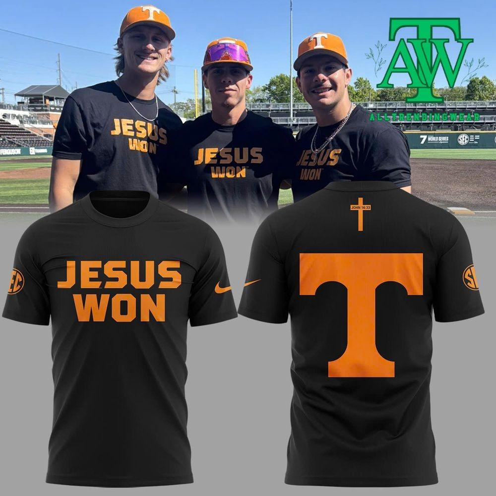 BUY IT NOW: https://alltrendingwear.com/product/tennesseebaseball-jesus-won-limited-shirt/
