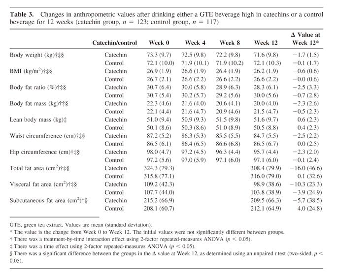 <출처 : Green Tea Catechin Consumption Enhances Exercise-Induced Abdominal Fat Loss in Overweight and Obese Adults. J Nutr. 2009 Feb;139(2):264-270>