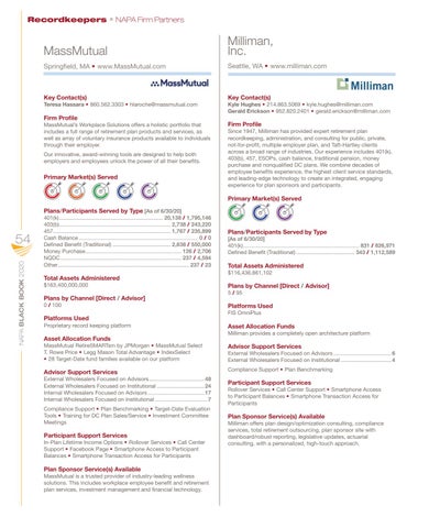 Plans/Participants Served by Type [As of 6/30/20] 401(k) ............................................................................ 831 / 826,971 Defined Benefit (Traditional) ...................................... 343 / 1,112,589