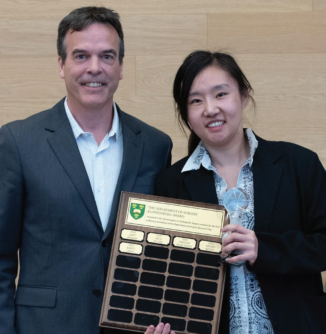 Our Annual Research Day was a highlight, featuring an excellent presentation by our visiting professor, Dr. Karimmuden from Vancouver, and we are grateful to Dr. Fourney and Karen Mosier for their organizational support. At the Annual Surgery Celebration, we recognized our faculty’s promotions, accomplishments, and retirements, which are showcased in this edition.