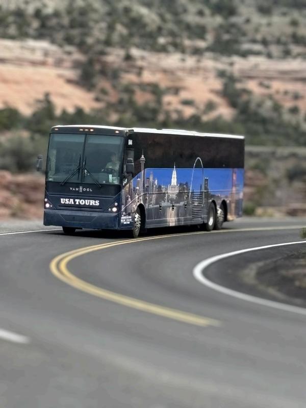 THE CONCEPT: These cross country trips are designed so that you can see and do a lot of things in a relatively short time. We use custom built full size touring coaches which are designed to accommodate 22 passengers very comfortably with a lot of special amenities. Some of these amenities include card tables for the avid players, a kitchen, 110 volt outlets, and a couch in the back. Just being able to get up and walk around or lie down and take a nap is a great advantage. We also prepare hot lunches on board and carry our own tables and chairs so we can have picnics at some of the most beautiful places in America. The idea is to create a “family” atmosphere which is easy to do with so few people on each tour These are not ordinary bus trips