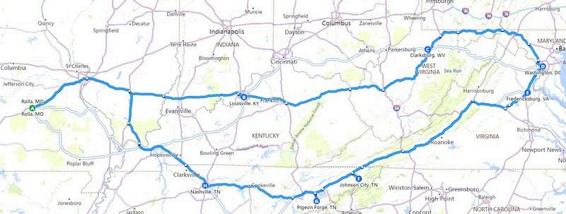We’ll travel from Missouri today to Louisville, KY. We’ll arrive in time to check into our hotel and have a relaxing evening in Louisville. We have no venues today, but we’ll find an interesting stop along the way.
