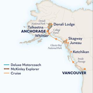 7 days cruising, 2 days motorcoach, 1 day train to Denali National Park