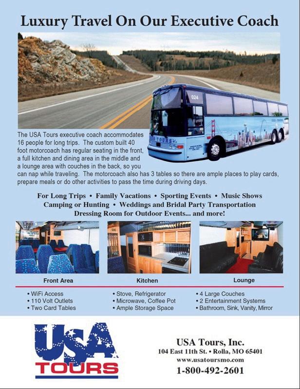 PriceIncludes: FullSizeMotorcoach•Lodging•AllVenues 4HotelBreakfasts•1Lunch•3Dinners Transportationtoandfromyourhomewithin130milesofRolla