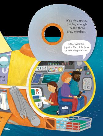 Lift flaps and peep through holes to explore with a little sub on a deep-sea dive.