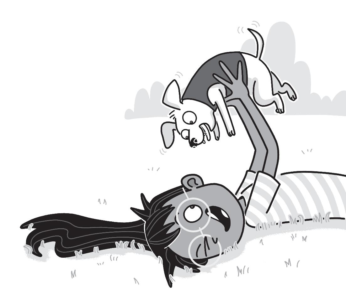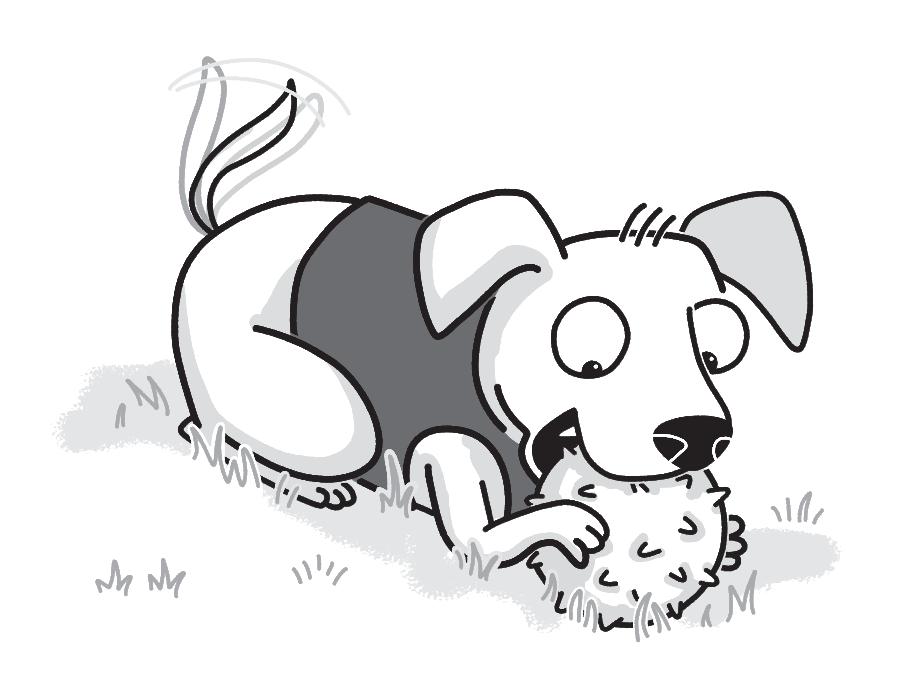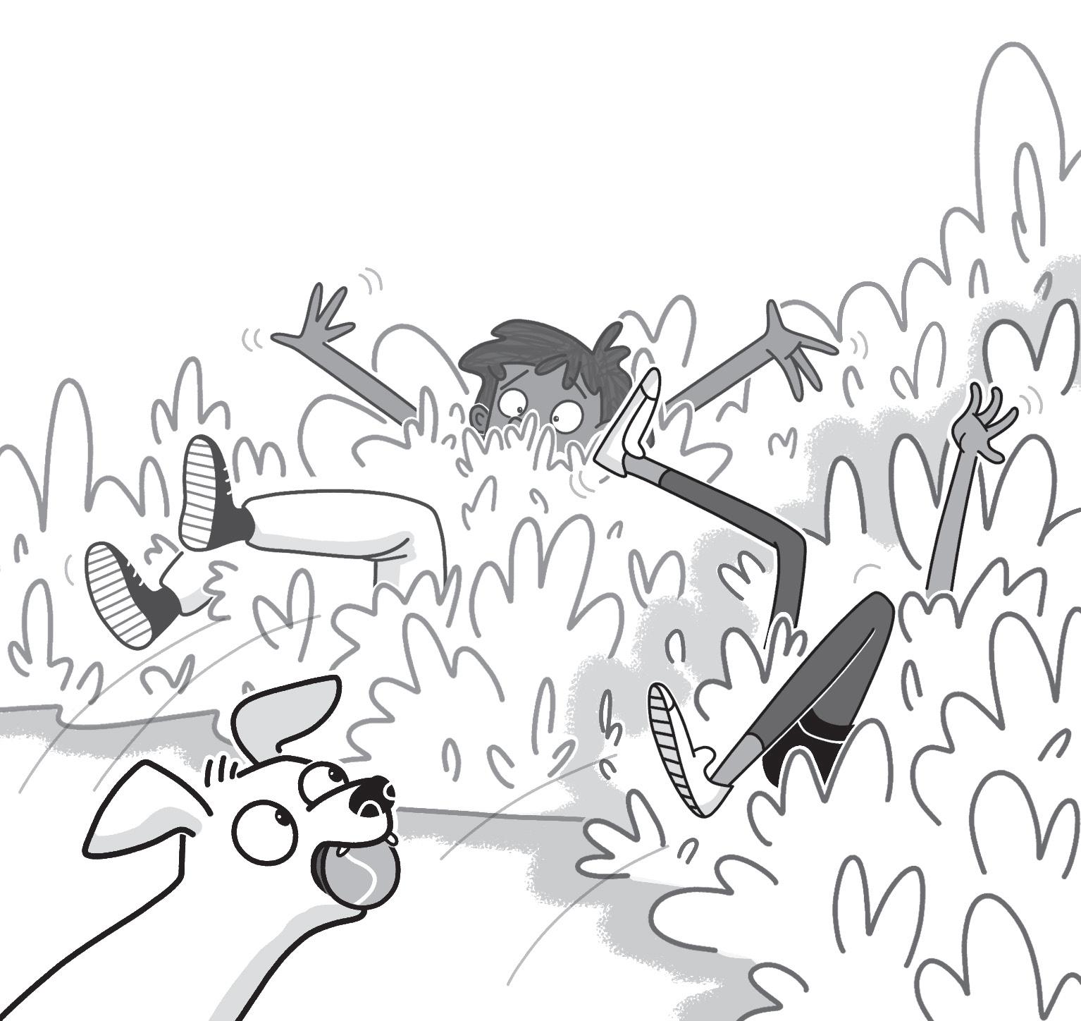 “Careful!” a voice calls out. I look up and see it’s Hari, who’s still wrestling with the puppy. It’s a Labrador – a girl (don’t ask how I know this) – and she’s yapping loudly at Hari and rolling around on the floor with her legs in the air. She gets up when she sees me and I notice she’s wearing a harness, which is like a sleeveless jacket for a dog. I’ve read they’re good for training pups. There’s a long lead attached to the harness, and Hari’s holding the other end, but I realize it’s causing them a bit of trouble. The pup is running round Hari in circles, which means he’s turning round and around too!