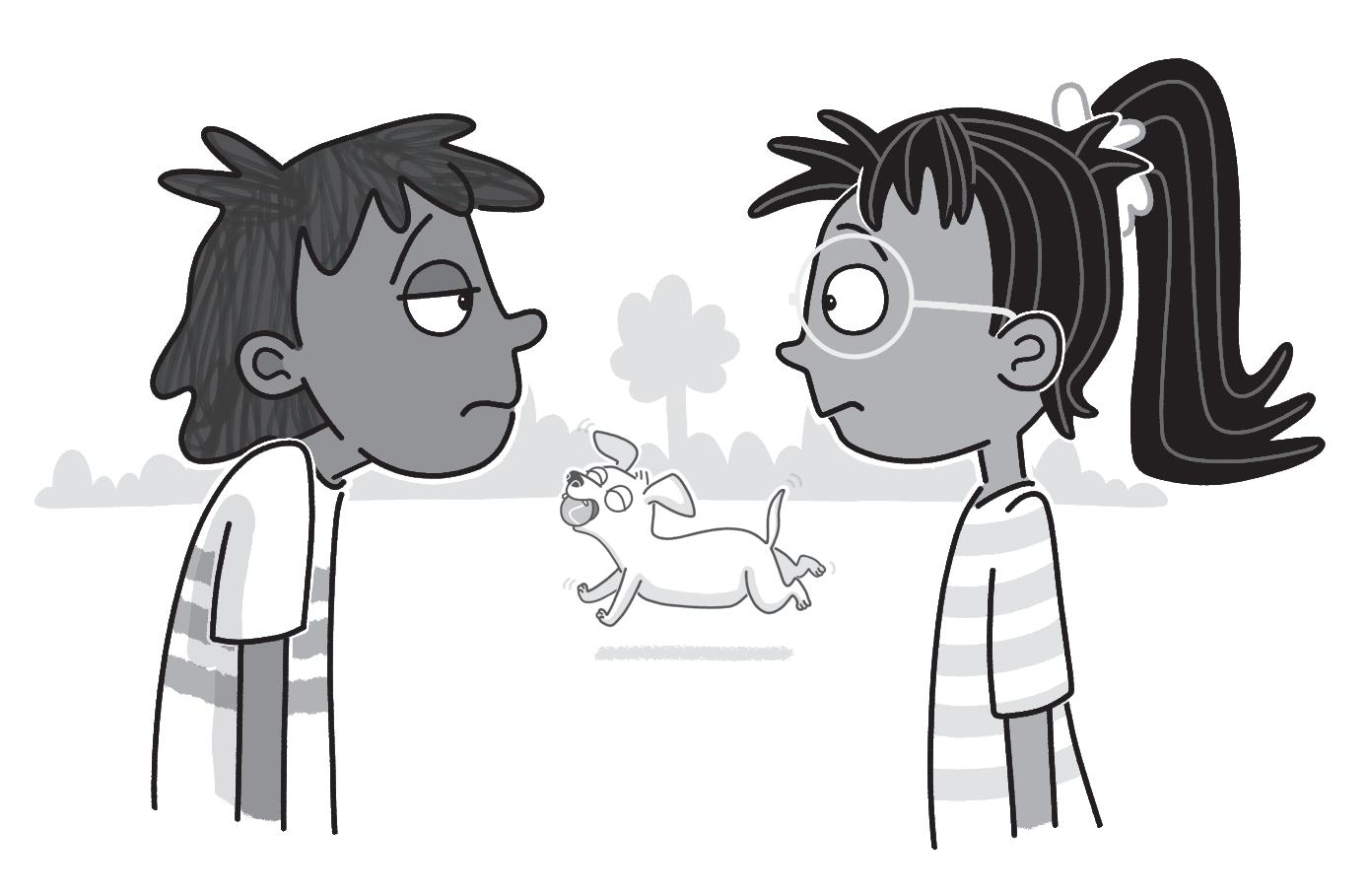 Leo frowns. “Whatever, she’ll be gone soon anyway. I heard Hari’s mum telling my mum she can’t take any more of the dog’s bad behaviour.” He pulls a face and walks away.