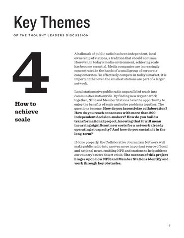 A hallmark of public radio has been independent, local ownership of stations, a tradition that should continue. However, in today’s media environment, achieving scale has become essential. Media companies are increasingly concentrated in the hands of a small group of corporate conglomerates. To effectively compete in today’s market, it is important that even the smallest stations are part of a larger network. Local stations give public radio unparalleled reach into communities nationwide. By finding new ways to work together, NPR and Member Stations have the opportunity to enjoy the benefits of scale and solve problems together. The questions become: How do you incentivize collaboration? How do you reach consensus with more than 200 independent decision-makers? How do you build a transformational project, knowing that it will mean incurring significant new costs for a network already operating at capacity? And how do you sustain it in the long-term? If done properly, the Collaborative Journalism Network will make public radio into an even more important source of local and national news, enabling NPR and stations to help address our country’s news desert crisis. The success of this project hinges upon how NPR and Member Stations identify and work through key obstacles.