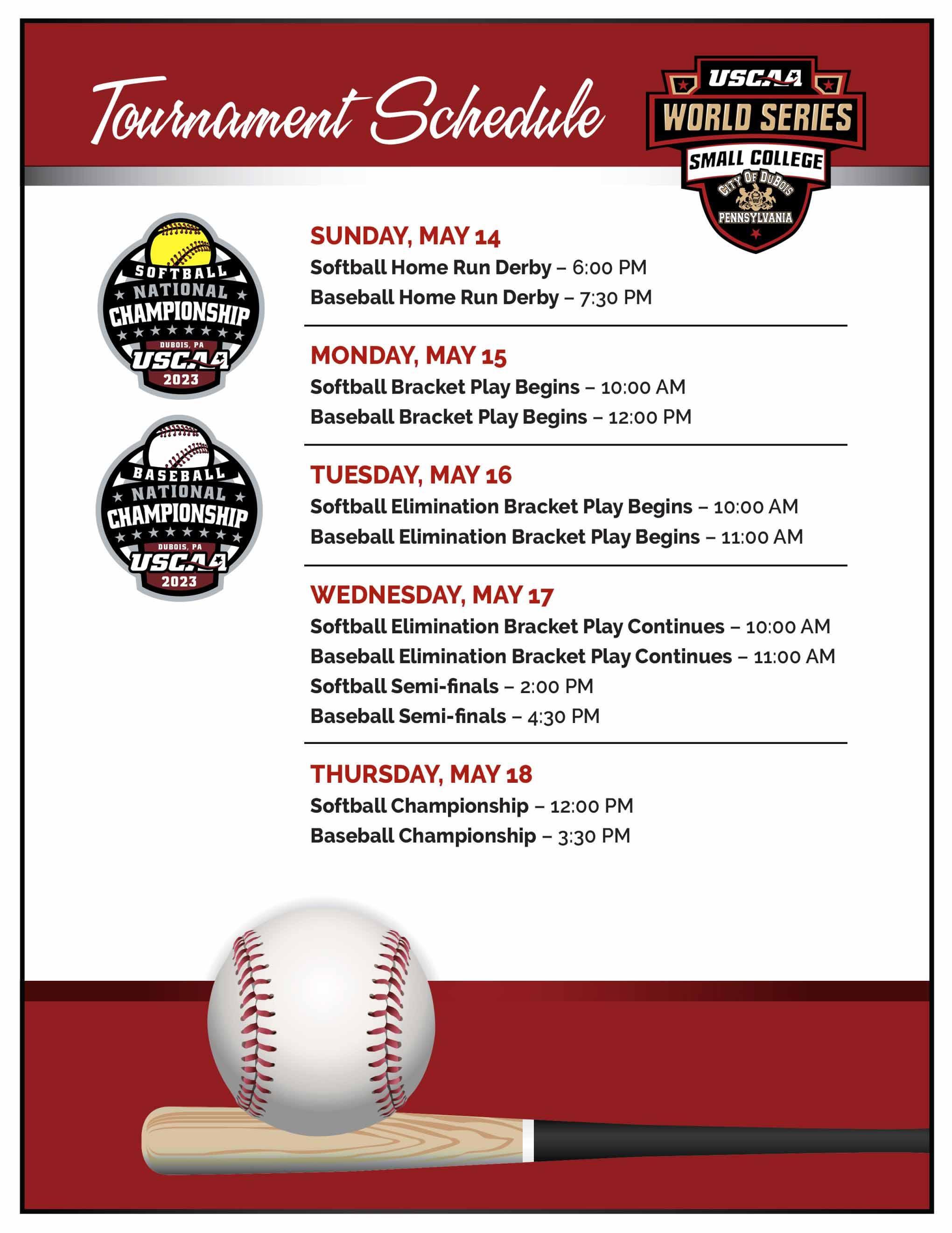 Runner Up 3rd Place Game 17 6:00 PM Loser Game 15 2023 USCAA SOFTBALL NATIONAL CHAMPION MON., MAY 15 MON., MAY 15 TUES., MAY 16