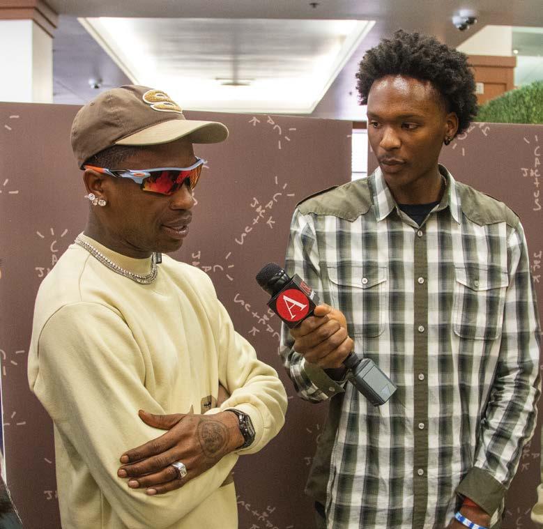 C An Annenberg Media student reporter interviews rapper and entrepreneur Travis Scott at the launch of a new apparel collaboration.