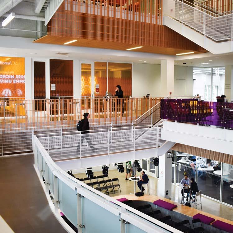 B Wallis Annenberg Hall Forum, an atrium spanning four floors of nooks, crannies and tables close to USC Annenberg classrooms