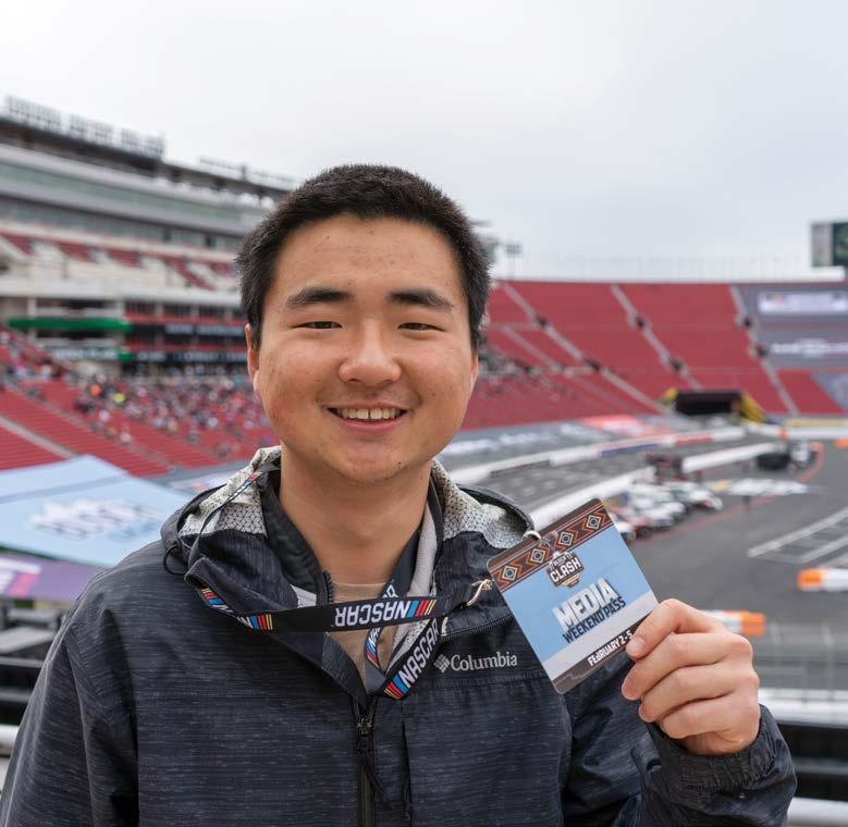 A A student attends the NASCAR Clash at the Coliseum as a member of the media.