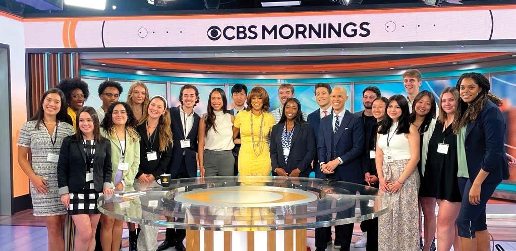 E Students visit the set of CBS Mornings with hosts Gayle King and Vladimir Duthiers, as well as alumna and executive producer Shawna Thomas, during the New York City Maymester program.