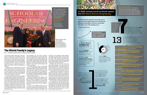 EDITORIAL "Perhaps 100 years from now, when humans are broadcasting the weather from Mars, we may be able to trace the origins of those information technologies to The Andrew and Erna Viterbi School of Engineering.” – USC President and former Dean of the School of Engineering C.L. Max Nikias (2004)