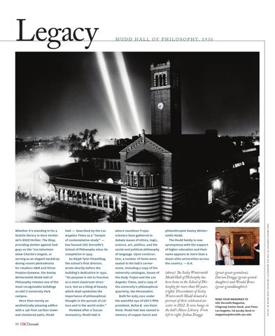 (great-great-grandson), Darian Dragge (great-granddaughter) and Wendel Bruss (great-granddaughter). send your memories to USC Dornsife Magazine, Citigroup Center 8206, 41st Floor, Los Angeles, CA 90089-8206 or magazine@dornsife.usc.edu
