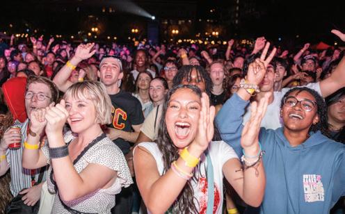 As part of Trojan Family Weekend, rock icons the B-52s perform at USC. Their advice? “If you’re a writer or a musician, and you think an idea is too crazy, write it down — or record it,” says Fred Schneider (right), to which Kate Pierson (left) adds, “And wear a wig.”