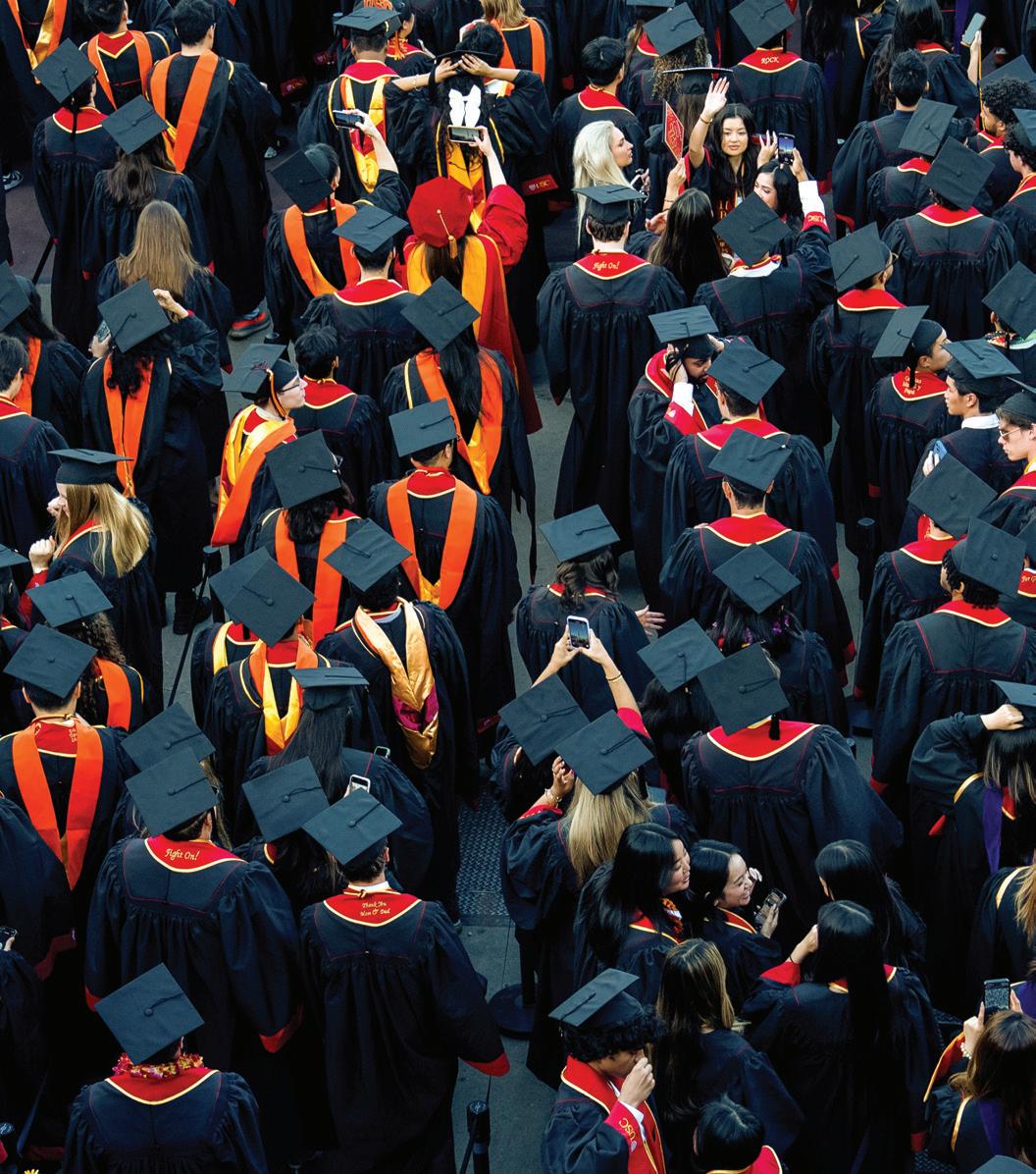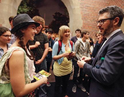 Renowned radio host Ira Glass (right) speaks to Trojans about the importance of having passion, joy and curiosity for life and for work, no matter what field, reminding them of how much of that joy can come from hearing and telling stories.