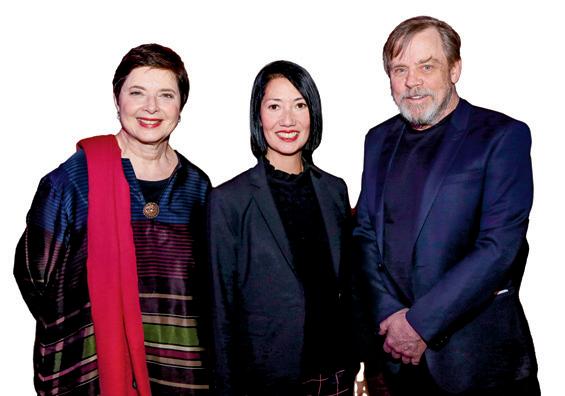 Actor, model, filmmaker and philanthropist Isabella Rossellini (left), with Visions and Voices Executive Director Daria Yudacufski (center) and actor Mark Hamill (right), who introduced the evening.