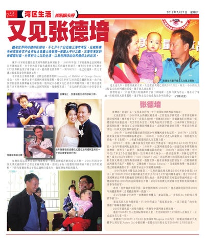 又見張德培 著名世界網球健將張德培,於七月十六日蒞臨三藩市灣區。應威斯康 辛州花旗參農戶合作社全美最大經銷商---美國太子行之邀,三藩市灣區的 傳媒面對面,分享初為人父的生活,以及在網球運動和信仰上的近況。 現年40歲的張德培是美國華裔職業網球好手。1989年年僅17歲的他捧走法國網球 公開賽的冠軍,至今仍然是奪取大滿貫單打冠軍的最年輕球手。他在90年代長年躋身 ATP世界職業男子球手前十名,最高排名世界第二。到今時今日,他已經退休,致力於 透過張家基金會作慈善工作。 今年基金會籌得善款,讓橙縣的慈善機構Humanity of Habitat of Orange County 受益。另外,他舉辦多個慈善網球訓練課程,吸引5歲至72歲的民眾踴躍參加。由於他 參加的慈善表演賽遍及全球各地,他年紀小小的女兒已經有幸周遊列國。除了到訪過美 國許多不同州份外,還到過法國等國家。張德培笑說:「女兒的護照已經十分多姿多采 了。」 在球場上,張德培是出名的拼命三郎。
