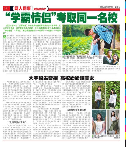 大學招生奇招 高校紛紛曬美女 “上清華變白富美”成為網上的熱門 話題,一些清華女生曬出自己剛入學和將畢 業的對比照片,網友評價稱“上完大學,變 成‘女神’了。”清華大學招生辦官方微博 也轉發推廣了這次曬照片活動,在高考錄取 季即將到來之際,此舉被網友質疑是借曬照 片大做“招生廣告”。對此,清華大學招生 辦回應稱,“上清華變白富美”成為一個熱 議話題已遠遠超出本意,惡意揣測更是不 必。 曬照片的嘗鮮者是清華大學航天航空 學院應屆碩士畢業生林麗。據清華大學招生 辦人士回憶,6月14日前後,林麗在自己的 人人網上,上傳了兩張個人照,對比了自己 2007年進入清華大學,和今年即將碩士畢 業時的變化。《新京報》報道,剛入學時, 林麗皮膚略黑,待碩士畢業時,儼然成了一 名“白富美”,引來不少討論,在清華師生 間“點燃”了曬照片的時尚。