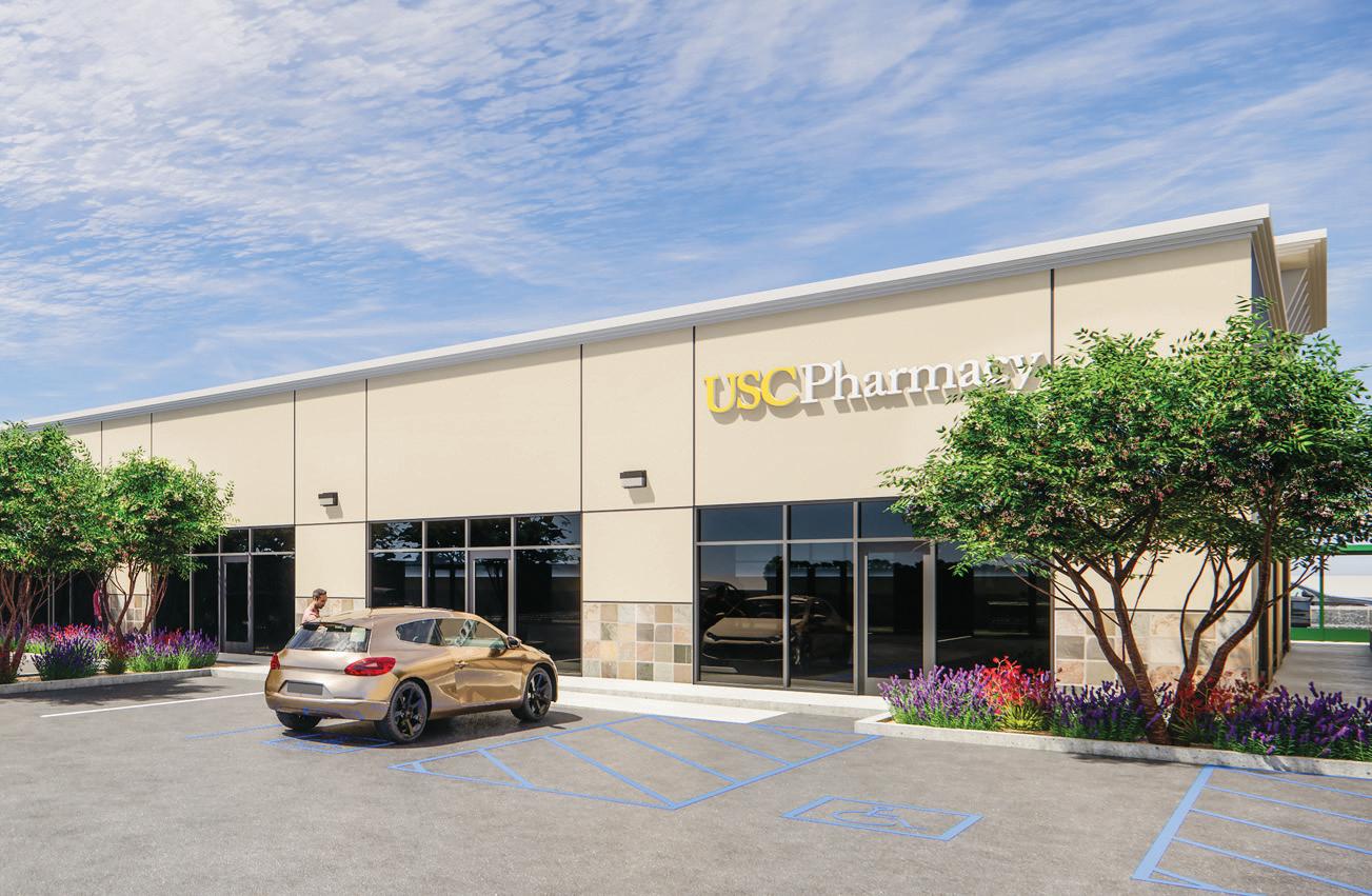 Plans for the new USC Pharmacy location in South Los Angeles, shown here in a rendering, continue to take shape. The new pharmacy, the school’s sixth, is scheduled to open in 2023.