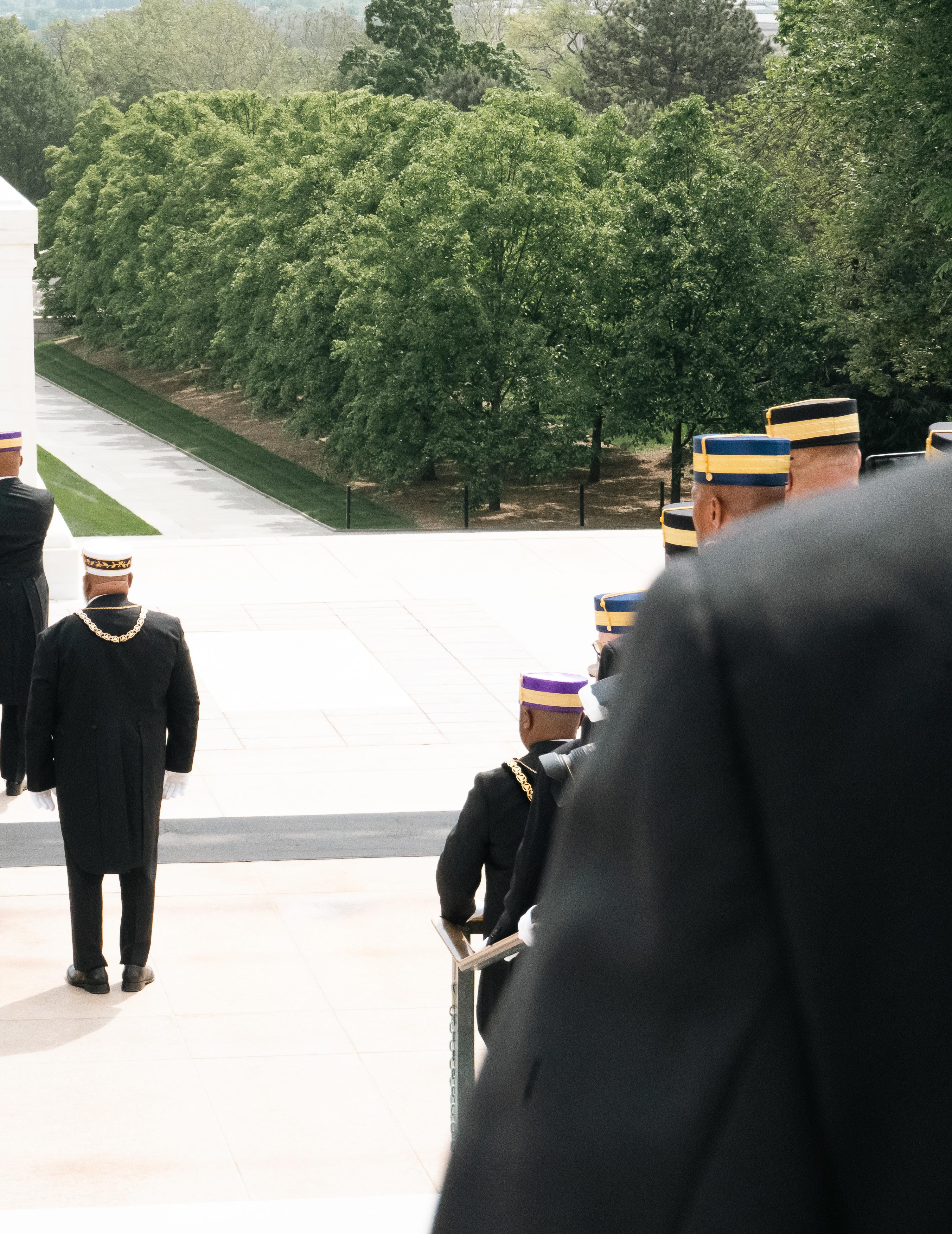 On April 25th, I had the distinct privilege, along with the three other legitimate Sovereign Grand Commanders, the Grand Masters from the District of Columbia and Maryland, and the President of the Conference of Grand Masters, of laying a wreath at the Tomb of the Unknown Soldier at Arlington National Cemetery. Coordinated by Deputy Eric Konohia and the Orient of the District of Columbia, this event served as a reminder of the duty we owe to those who sacrificed for our country.
