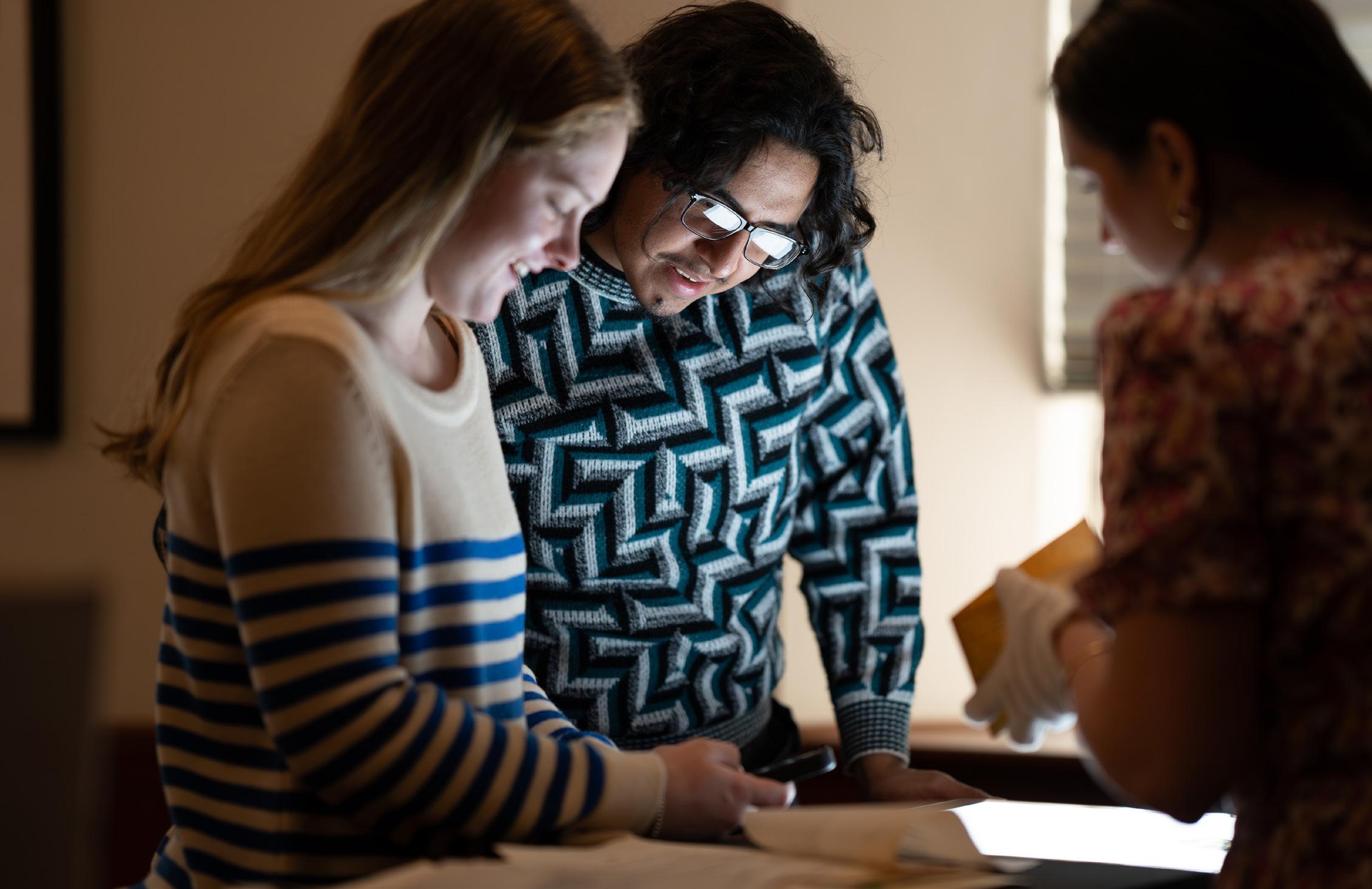 Above: Environmental studies students look through archives in the USC Libraries Special Collections Room. Their research was for a fall 2024 course on the community impacts of urban development projects in Los Angeles. (Photo: Nick Neumann/USC Wrigley Institute)