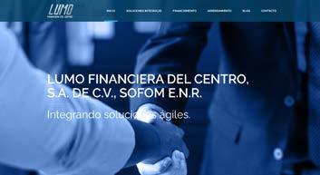 https://lumofinancieradelcentro.com/ LUMO Financiera del Centro se constituye en el 2009 como una Sociedad Financiera de Objeto Múltiple (SOFOM E.N.R.) especializada y enfocada en el Sector Gobierno, para atender necesidades de financiamiento y arrendamiento del Sector Público. 06