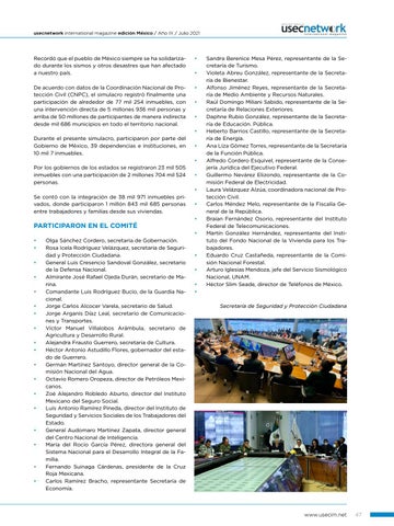 Sandra Berenice Mesa Pérez, representante de la Secretaría de Turismo. Violeta Abreu González, representante de la Secretaría de Bienestar. Alfonso Jiménez Reyes, representante de la Secretaría de Medio Ambiente y Recursos Naturales. Raúl Domingo Miliani Sabido, representante de la Secretaría de Relaciones Exteriores. Daphne Rubio González, representante de la Secretaría de Educación. Pública. Heberto Barrios Castillo, representante de la Secretaría de Energía. Ana Liza Gómez Torres, representante de la Secretaría de la Función Pública. Alfredo Cordero Esquivel, representante de la Consejería Jurídica del Ejecutivo Federal. Guillermo Nevárez Elizondo, representante de la Comisión Federal de Electricidad. Laura Velázquez Alzúa, coordinadora nacional de Protección Civil. Carlos Méndez Melo, representante de la Fiscalía General de la República. Braian Fernández Osorio, representante del Instituto Federal de Telecomunicaciones. Martín González Hernández, representante del Instituto del Fondo Nacional de la Vivienda para los Trabajadores. Eduardo Cruz Castañeda, representante de la Comisión Nacional Forestal. Arturo Iglesias Mendoza, jefe del Servicio Sismológico Nacional, UNAM. Héctor Slim Seade, director de Teléfonos de México.