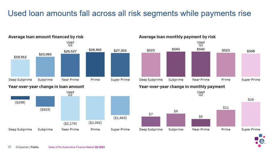 The Experian report also shows that while average loan rates are up – 11.38% – used values are dropping and the amount financed is down.
