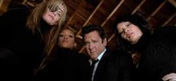 Mulher, de cabelo longo e cacheado, aparece de costas para a câmera. Ela está de frente para uma parede vermelha digitando no computador, mas nem a tela e nem suas mãos são visíveis. Apenas notamos a luz da tela.