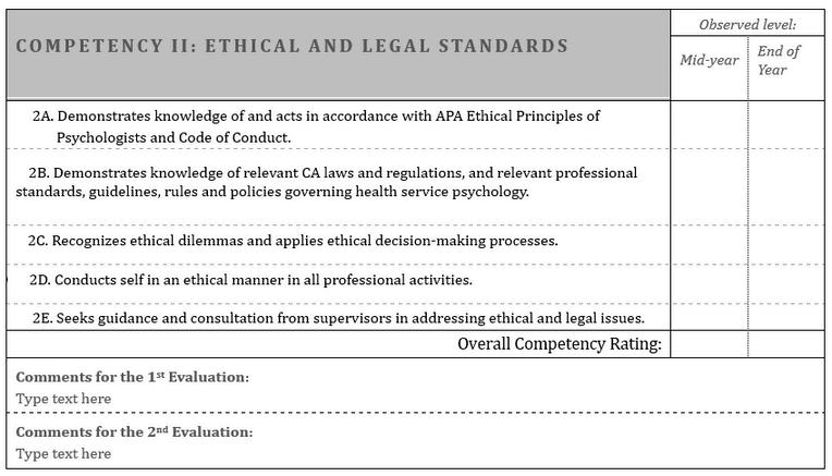 Adapted from, California Psychology Internship Council (CAPIC, 2010)