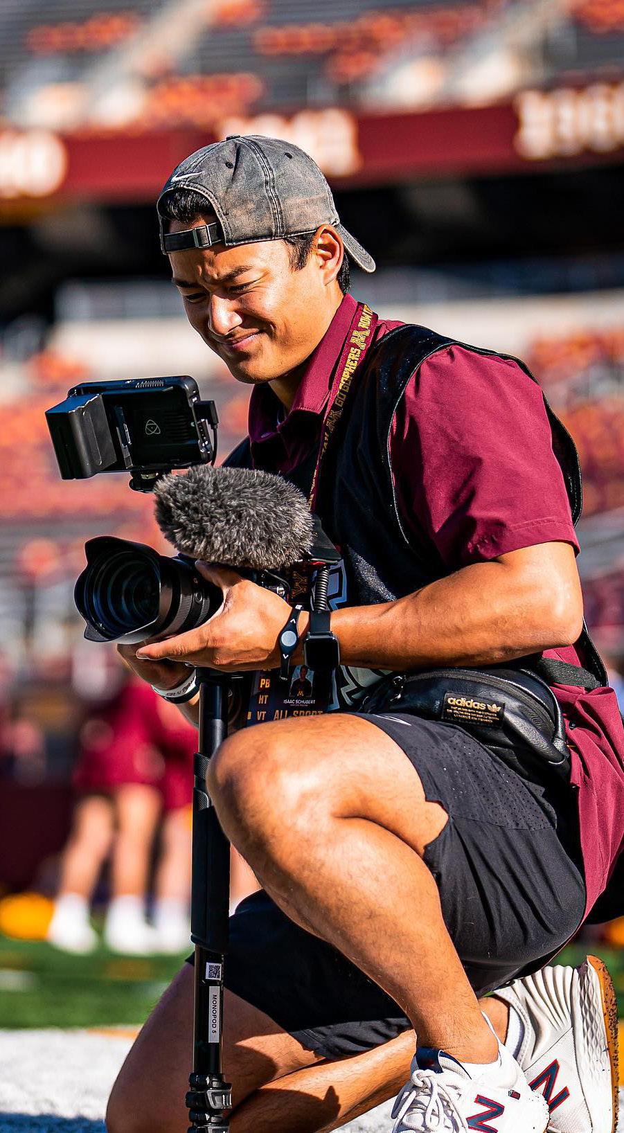 Fast forward to today, where he works for the University of Minnesota and the NFL as a multimedia producer and live content correspondent. “It’s been very humbling coming from Sioux Falls,” he said. “It’s also been really exciting seeing the opportunities of being able to film the NFL and the Gophers – to tell stories through that medium.” Schubert is currently covering the football and men’s basketball teams at the UMN as well as the Minnesota Vikings.
