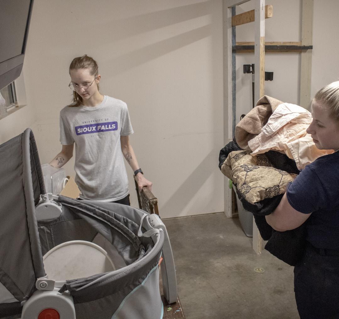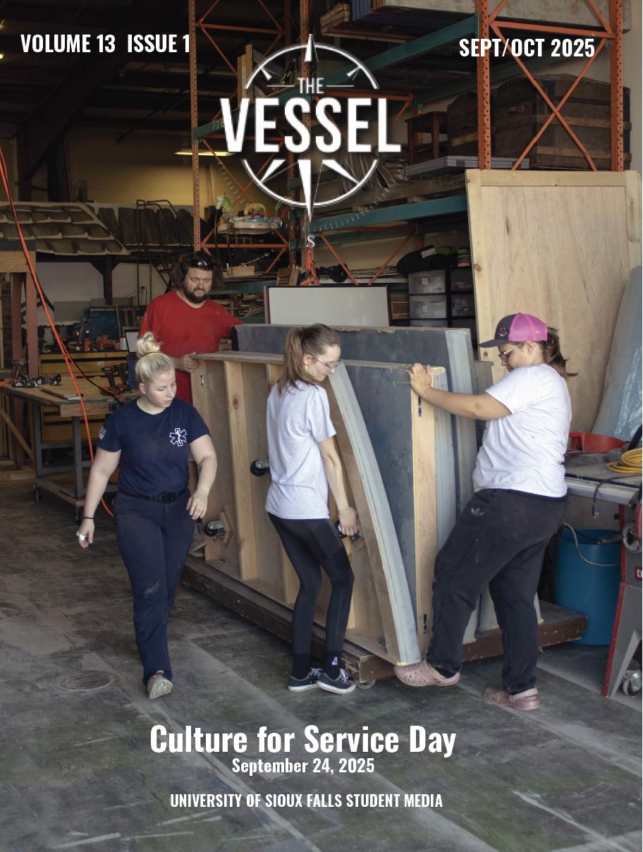 The University of Sioux Falls held its annual Culture for Service Day on September 24, 2025. Students from around the campus volunteered for projects in and around the Sioux Falls area. This group of students volunteered to help the Premiere Playhouse move and construct set pieces for their production of Noises Off. USF’s Culture for Service days are designed to prepare students not only for their careers, but to use their talents in ways that positively impact their communities.