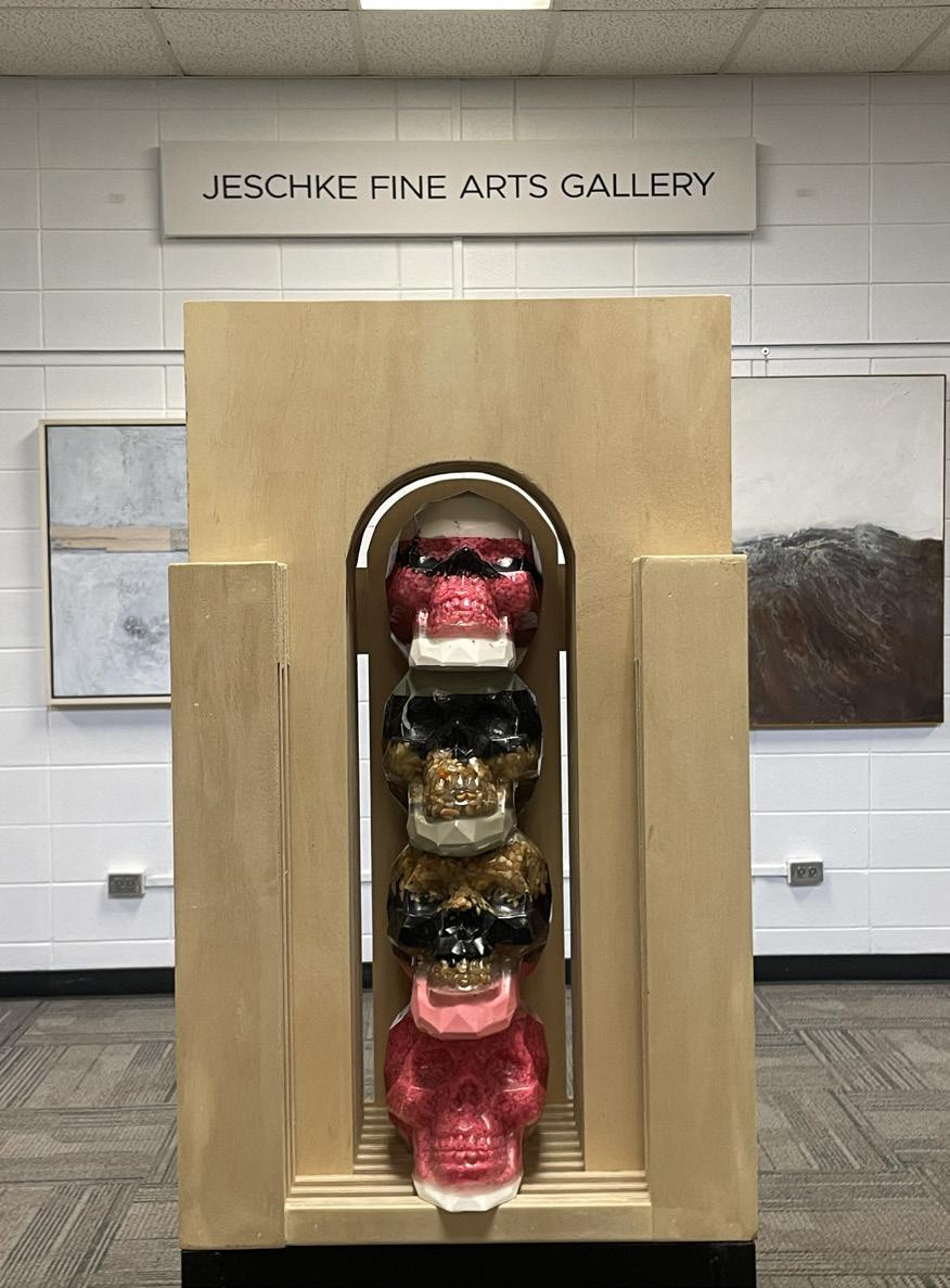 October 3, 2025, the Faculty Art Exhibition was held in the lower level of the Jeschke Fine Arts Center. Featured artists included Ceca Cooper, Dr. Nick Poppens, Joe Schaeffer, Nancy Olive, and Cody Henrichs. Students, faculty, and alumni attended an opening reception celebrating the artists’ most recent works. This was one of the many events that took place during homecoming week at USF.