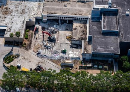 Pictured Right: May 2024 aerial view of the original (1973) College of Nursing building demolition.