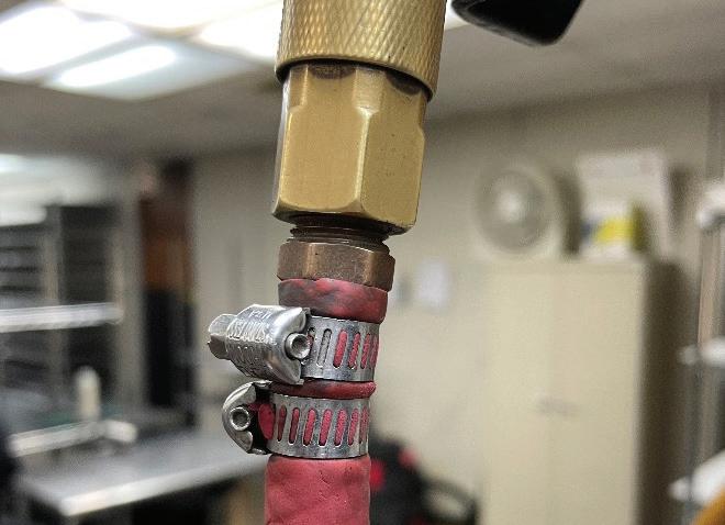 One of the most common safety hazards in the field is employers using worm-drive hose clamps to secure compressed air hoses to tool retainers. This type of connection is not designed for the pressure and service it is subjected to. Over time, tightening the clamp will cause it to dig into the hose material and compromise its structural integrity to the point that it can detach from the tool retainer. Injuries such as bruising, lacerations, or fractures from being struck by a whipping disconnected or ruptured hose.