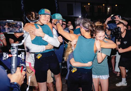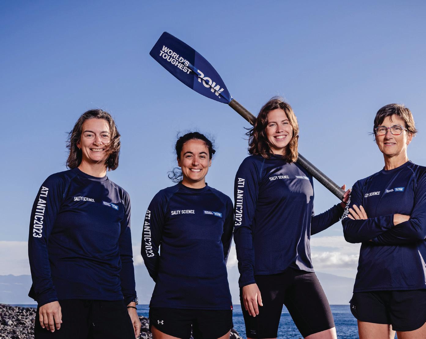 Salty Science, the rowing team led by USF Professor Chantale Bégin, celebrates the end of its 3,000-mile journey — and historic first-place victory in the women’s class — in the World’s Toughest RowAtlantic. The team was North America’s first to win in the category.