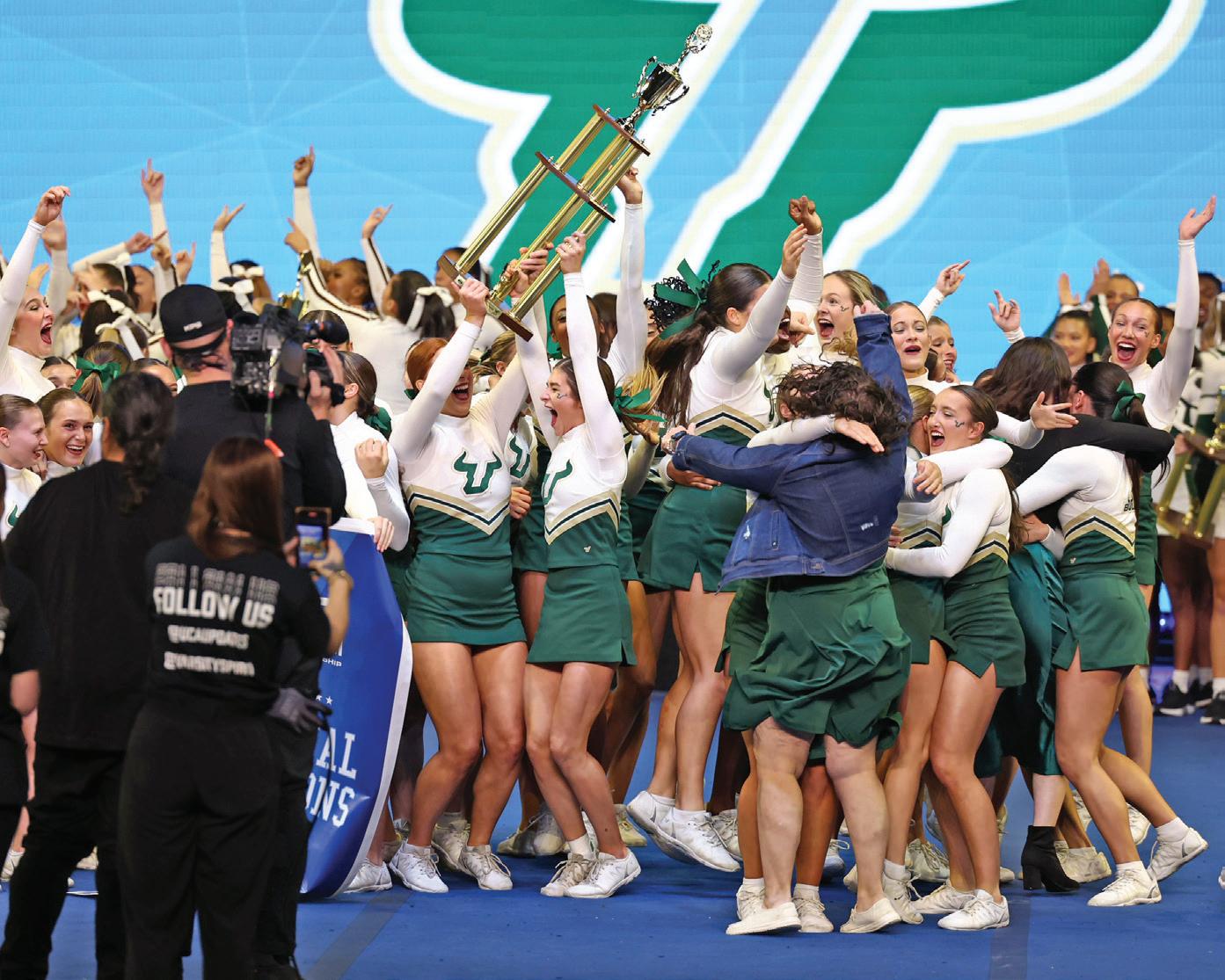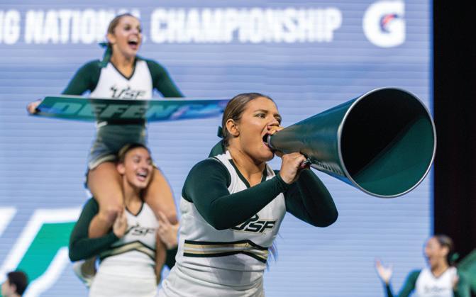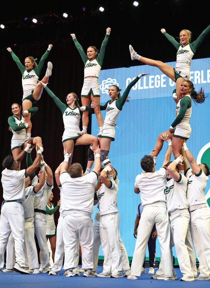 There’s another group of student-athletes who are just as dedicated and accomplished — our cheerleaders. As you’ll read on page 20, USF’s cheer squads set the national standard for excellence. The AllGirl Cheer Team won a pair of national titles during the Universal Cheerleading Association College Nationals — the fifth and sixth national championships earned by USF cheer programs in the last four years.