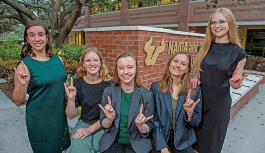 We also introduce you to the Investment Club at USF, one of the largest such student-organized clubs in the nation. Members have benefited from a robust internship program offered by the New York-based investment firm Star Mountain Capital at its Tampa office. But, as you’ll learn on page 24, former club president Gabriel Mocelin and other members are so passionate about helping their fellow students, they asked the firm’s CEO, Brett Hickey, to make an even larger investment by establishing a scholarship fund to benefit all USF business students. Hickey and Star Mountain Capital were soon on board — with that and more.